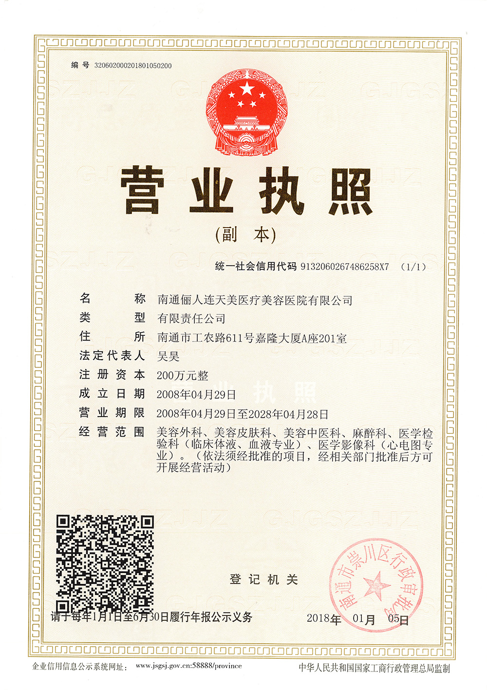 南通儷人連天美醫(yī)療美容醫(yī)院是與著名的醫(yī)療美容集團(tuán)合作建立的醫(yī)院,醫(yī)院提供高品質(zhì)的醫(yī)療美容服務(wù)。2008年,南通儷人連天美醫(yī)療美容醫(yī)院落戶南通,成為由南通衛(wèi)生局審批的專業(yè)醫(yī)療美容醫(yī)院。南通儷人連天美醫(yī)療美容醫(yī)院,特別設(shè)有專業(yè)的整形美容科、皮膚美容科和微創(chuàng)美容科三大科室,致力于為廣大求美者提供全方位的醫(yī)療美容服務(wù)。南通儷人連天美醫(yī)療美容醫(yī)院為求美者建立個人終生美麗檔案,一對一進(jìn)行細(xì)致服務(wù)。 11年來,南通儷人連天美醫(yī)療美容醫(yī)院,不斷引進(jìn)先進(jìn)設(shè)備,不斷完善醫(yī)美技術(shù),一批優(yōu)秀、專業(yè)而穩(wěn)定的醫(yī)生團(tuán)隊,為無數(shù)求美者鑄就美麗夢想。